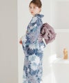 浴衣5点セット(ゆかた・帯・下駄・着付けマニュアル・腰ひも) 藍花爛漫