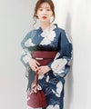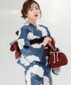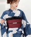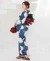 2026 浴衣5点セット(ゆかた・帯・下駄・着付けマニュアル・腰ひも) 涼風の藍紺牡丹