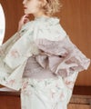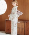 浴衣5点セット(ゆかた・帯・下駄・着付けマニュアル・腰ひも) 水彩の花月あそび