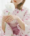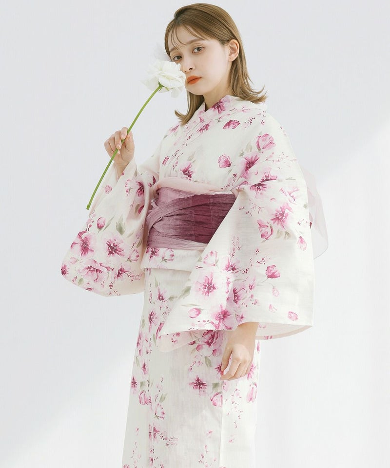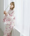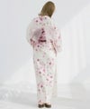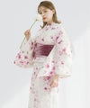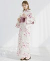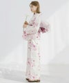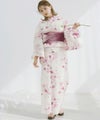 浴衣5点セット(ゆかた・帯・下駄・着付けマニュアル・腰ひも) 水彩の雪月花(桃)