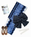 浴衣5点セット(ゆかた・帯・下駄・着付けマニュアル・腰ひも) 如月の藍紺ちらし