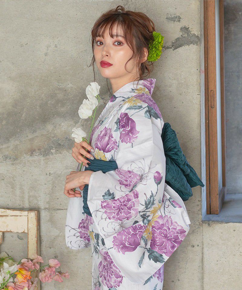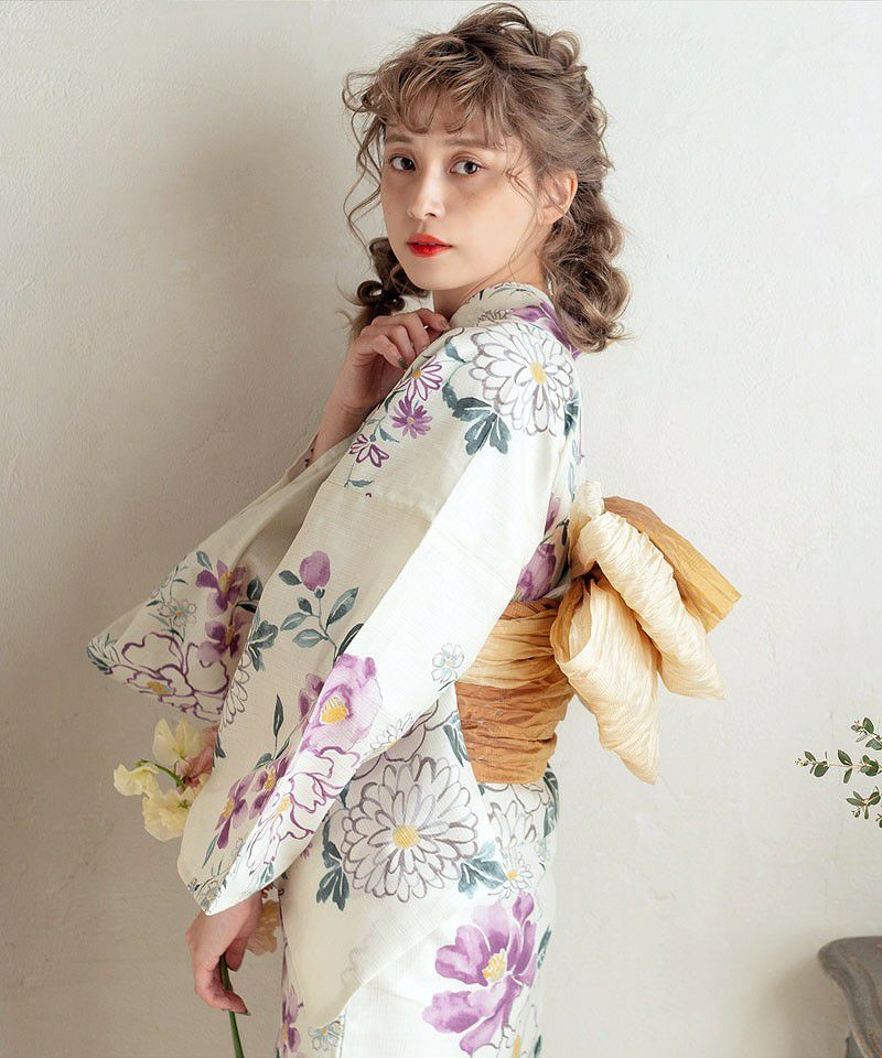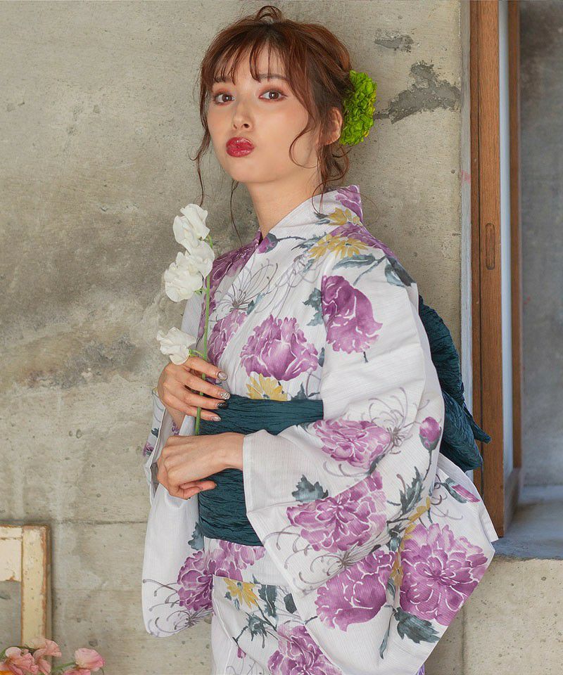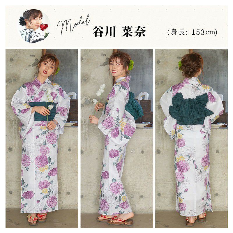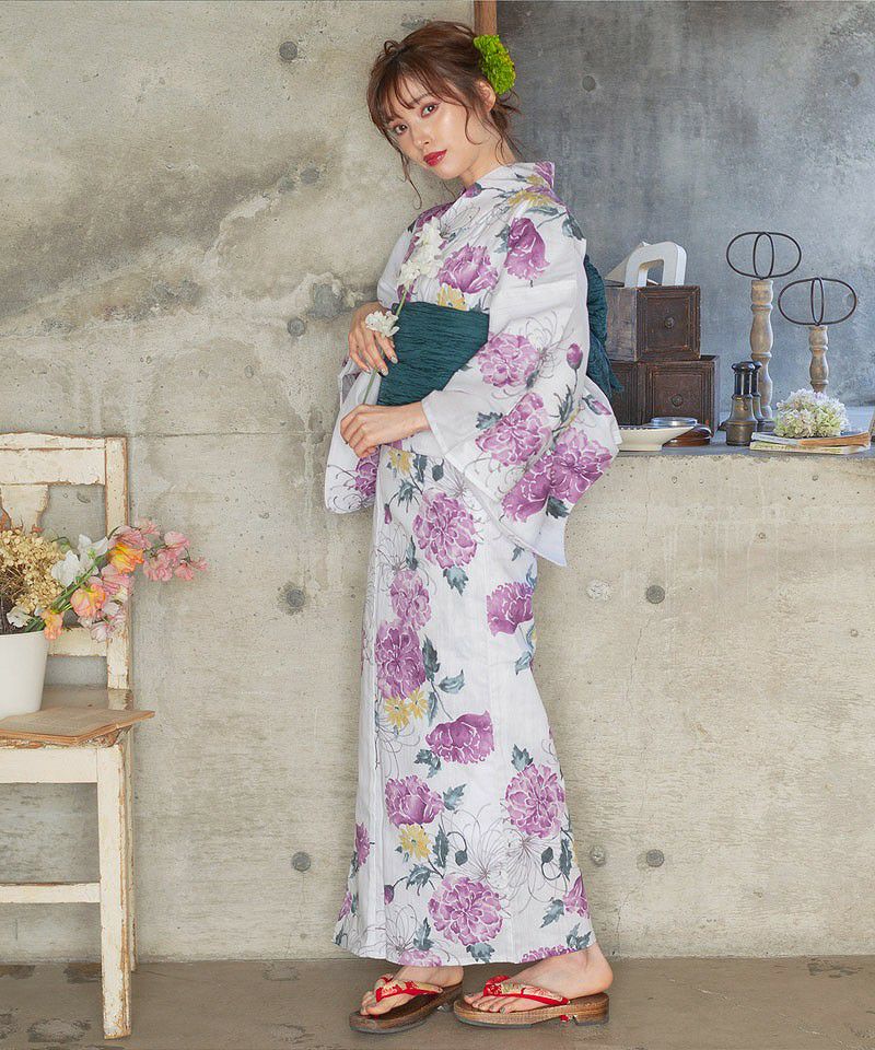 浴衣5点セット(ゆかた・帯・下駄・着付けマニュアル・腰ひも) 梅見月の菊ちらし