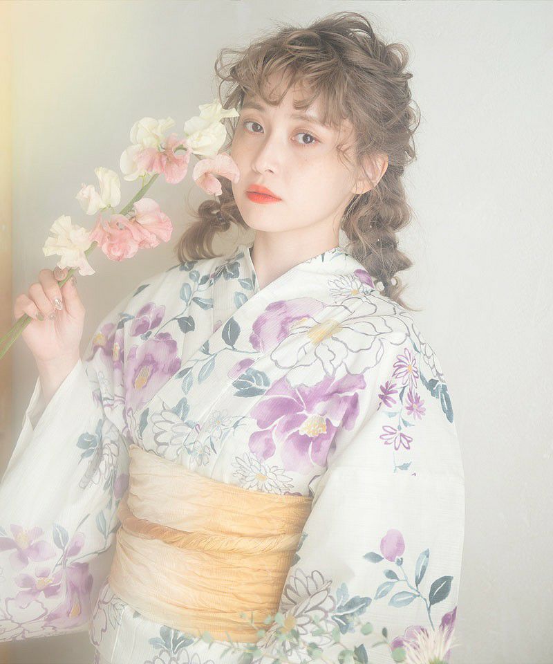 浴衣5点セット(ゆかた・帯・下駄・着付けマニュアル・腰ひも) 如月の幻想しらべ