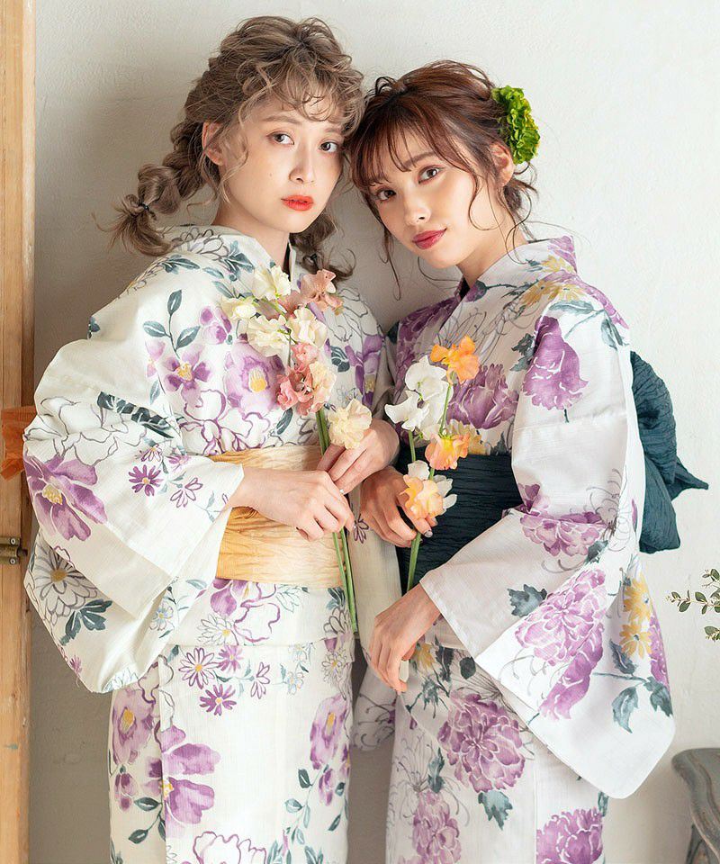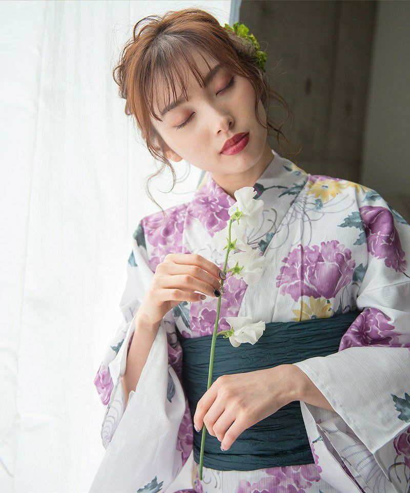 浴衣5点セット(ゆかた・帯・下駄・着付けマニュアル・腰ひも) 宇治のはなしらべ