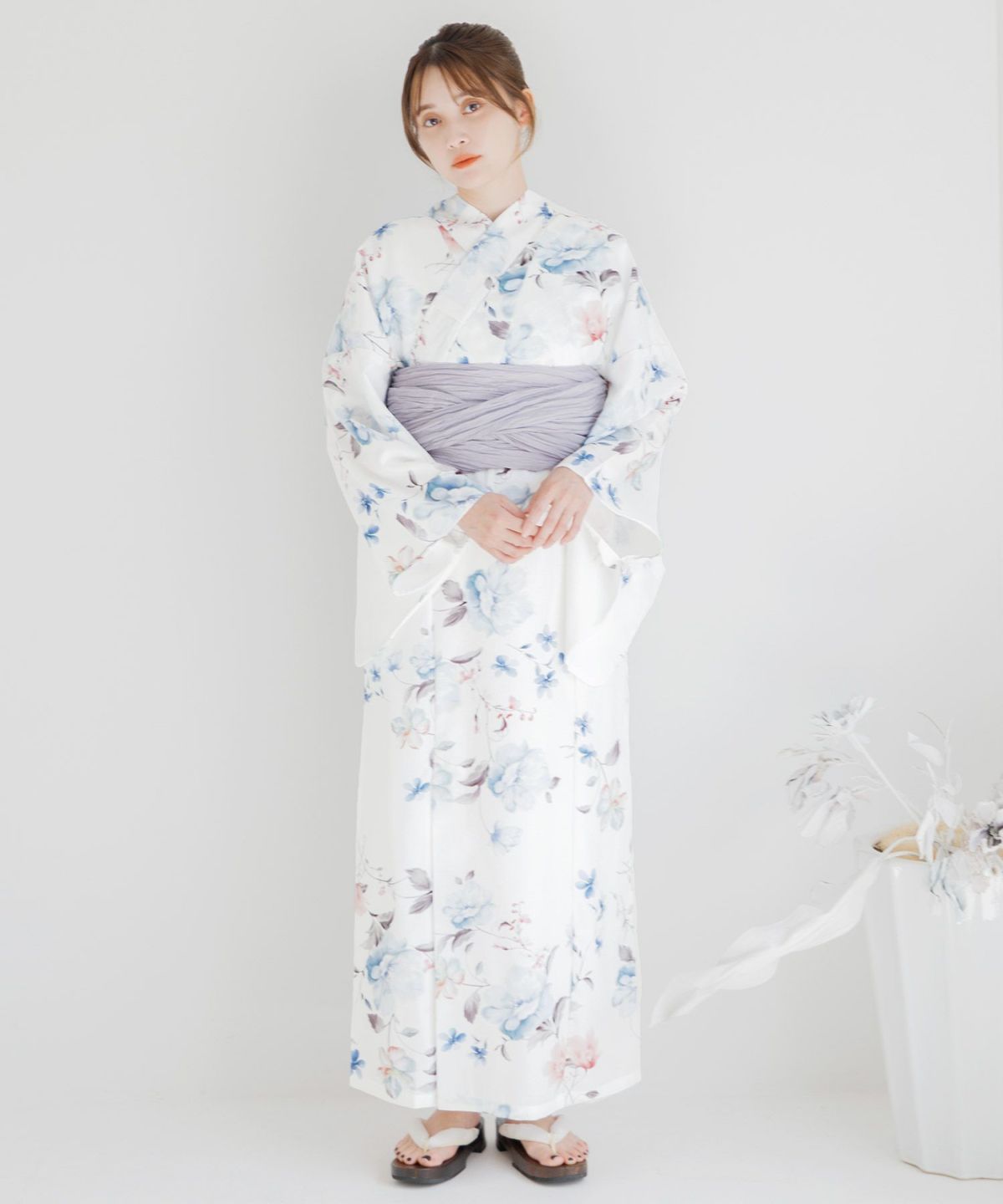 燦爛フラワーアート 2025 浴衣5点セット(ゆかた・帯・下駄・着付けマニュアル・腰ひも)