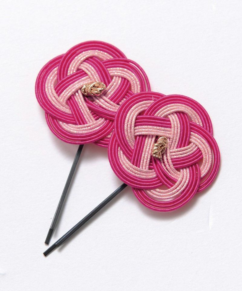 使い方自由自在♪2本セットの梅結び水引きバレッタです。梅結びは梅の花をモチーフにしており、和な雰囲気が魅力です! 浴衣姿を上品に、ワンランク上に仕上げてくれます。浴衣や振袖などのお着物、イベント等でお使い頂けるアイテムです◎