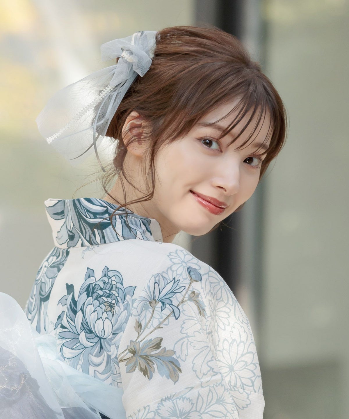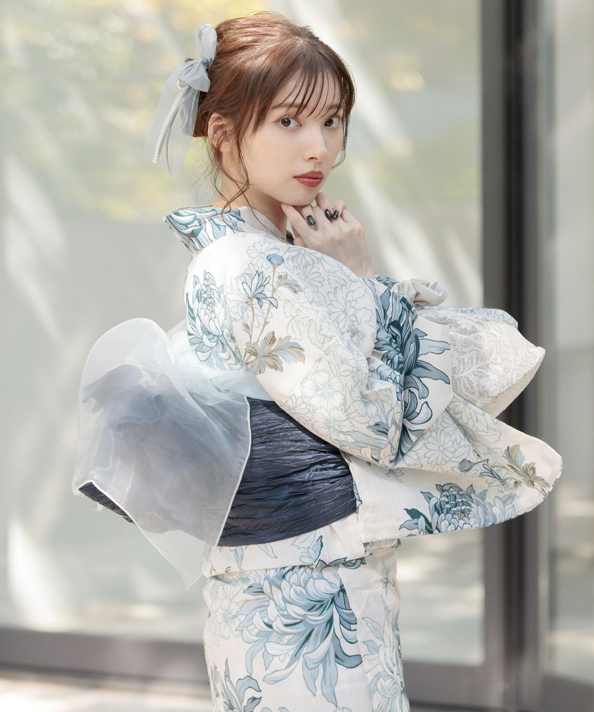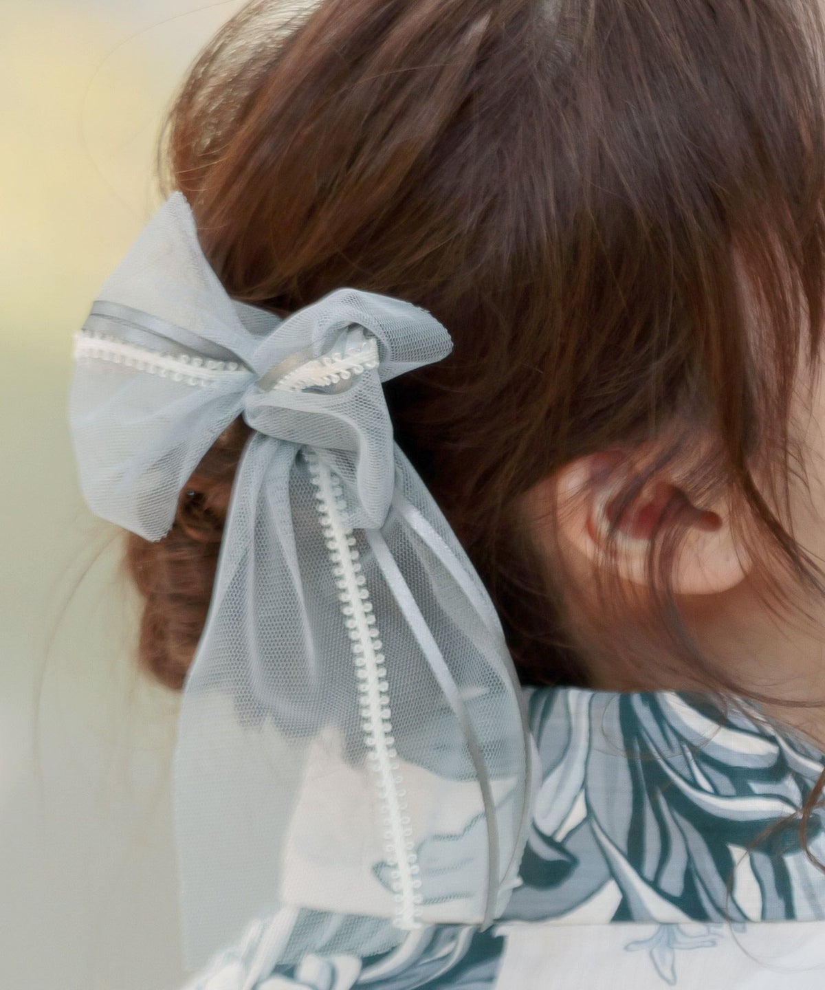 シフォンレース髪飾り グレーブルー