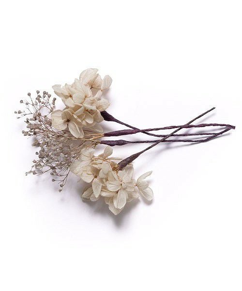 ドライフラワー髪飾り(4本セット) 2.あじさい×かすみ草