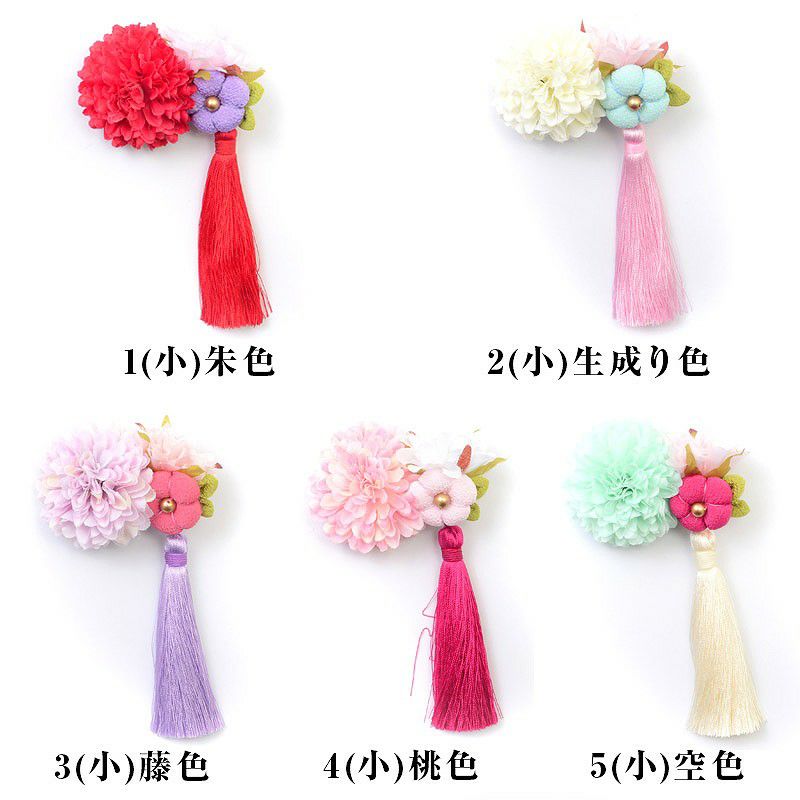タッセル付きフラワーアクセサリー(髪飾り) (小)空色