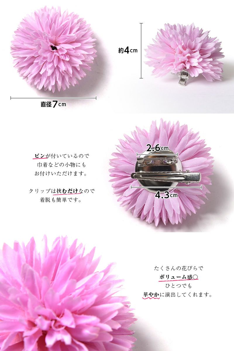 キュートな小ぶりのピンポンマム(髪飾り) ピンク