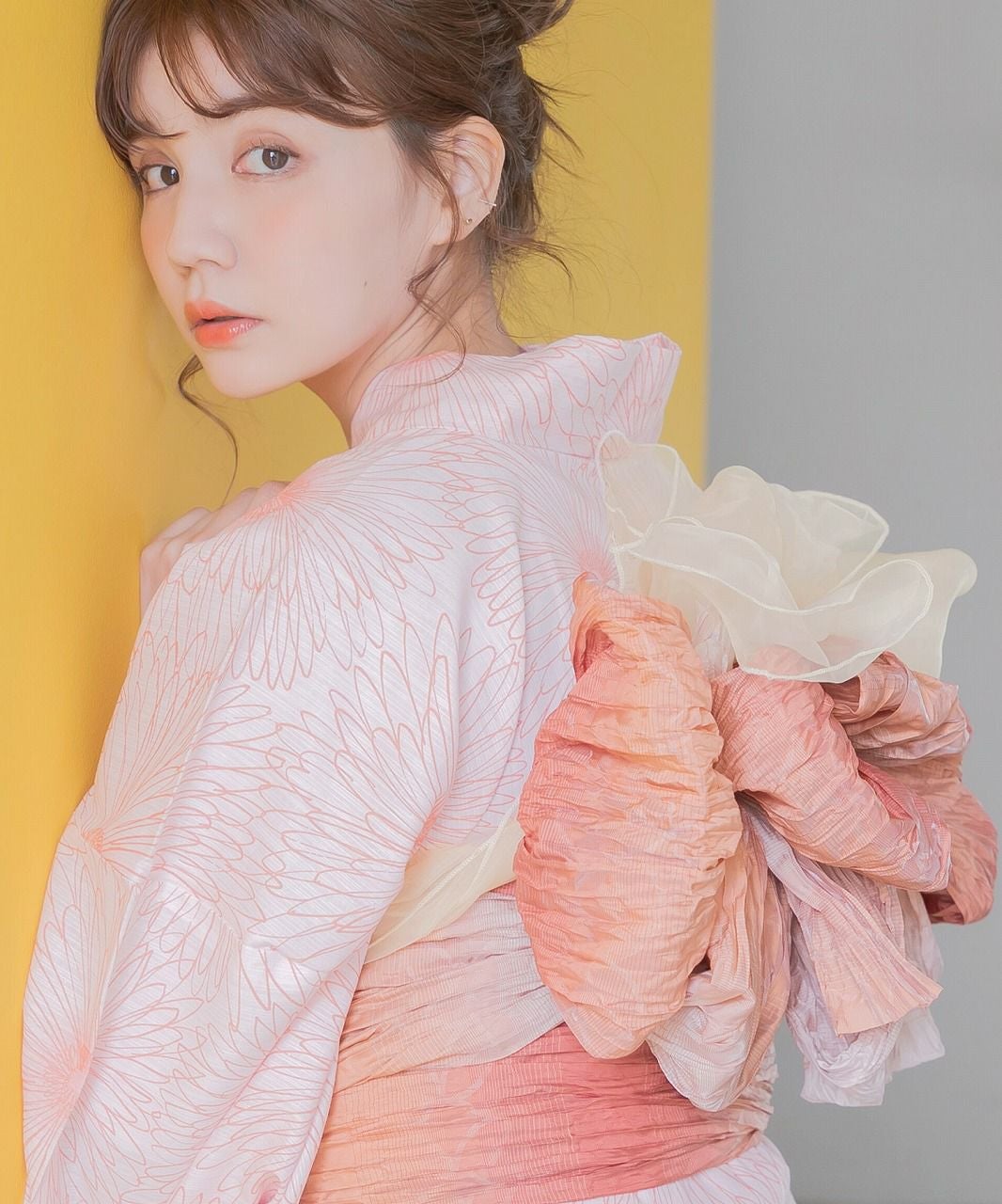 ふんわりオーガンジー兵児帯 もも色