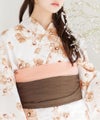 帯ににからめてちょうちょ結び、前でキュートにリボン、帯上げでエレガントに。
