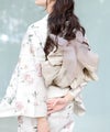 帯ににからめてちょうちょ結び、前でキュートにリボン、帯上げでエレガントに。