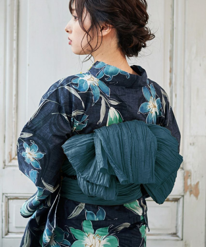 しわ加工くしゅふわ兵児帯 ターコイズ