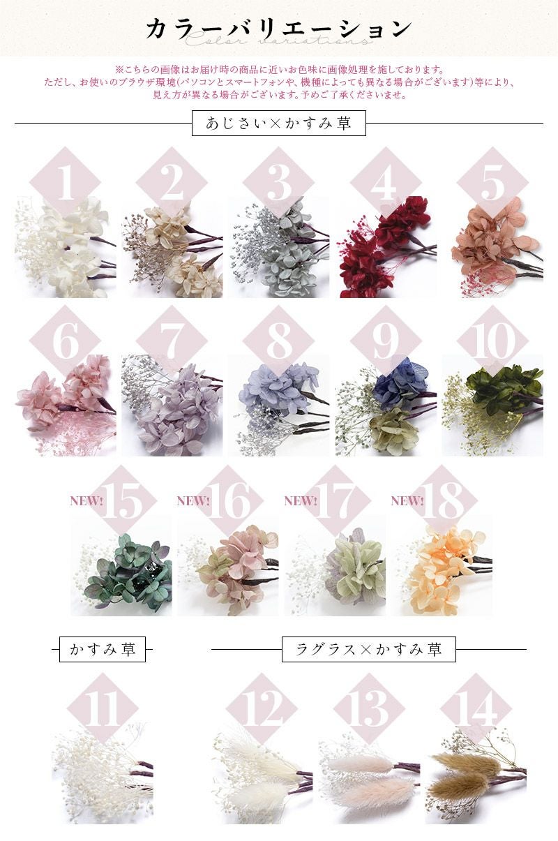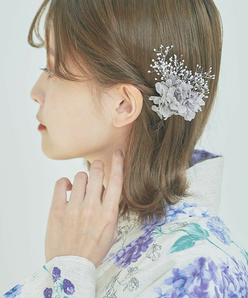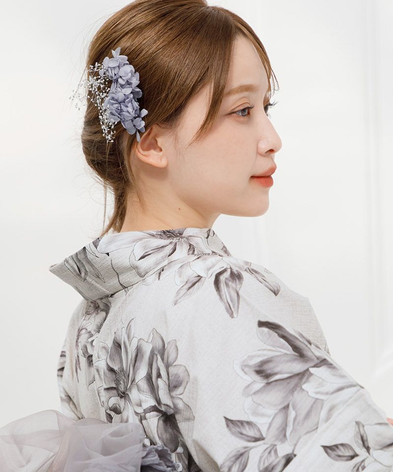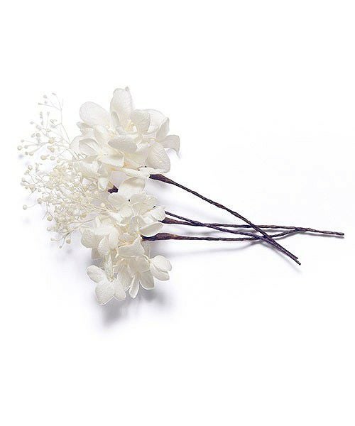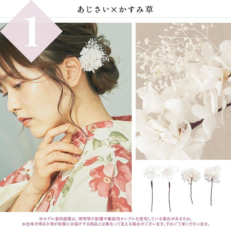 ドライフラワー髪飾り(4本セット) 9.あじさい×かすみ草