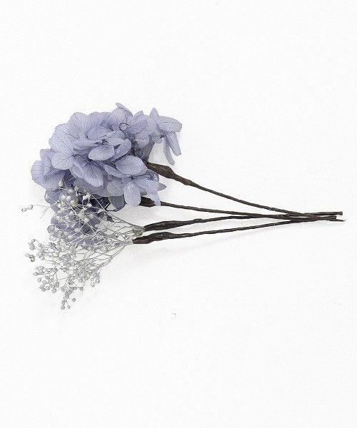 ドライフラワー髪飾り(4本セット) 4.あじさい×かすみ草