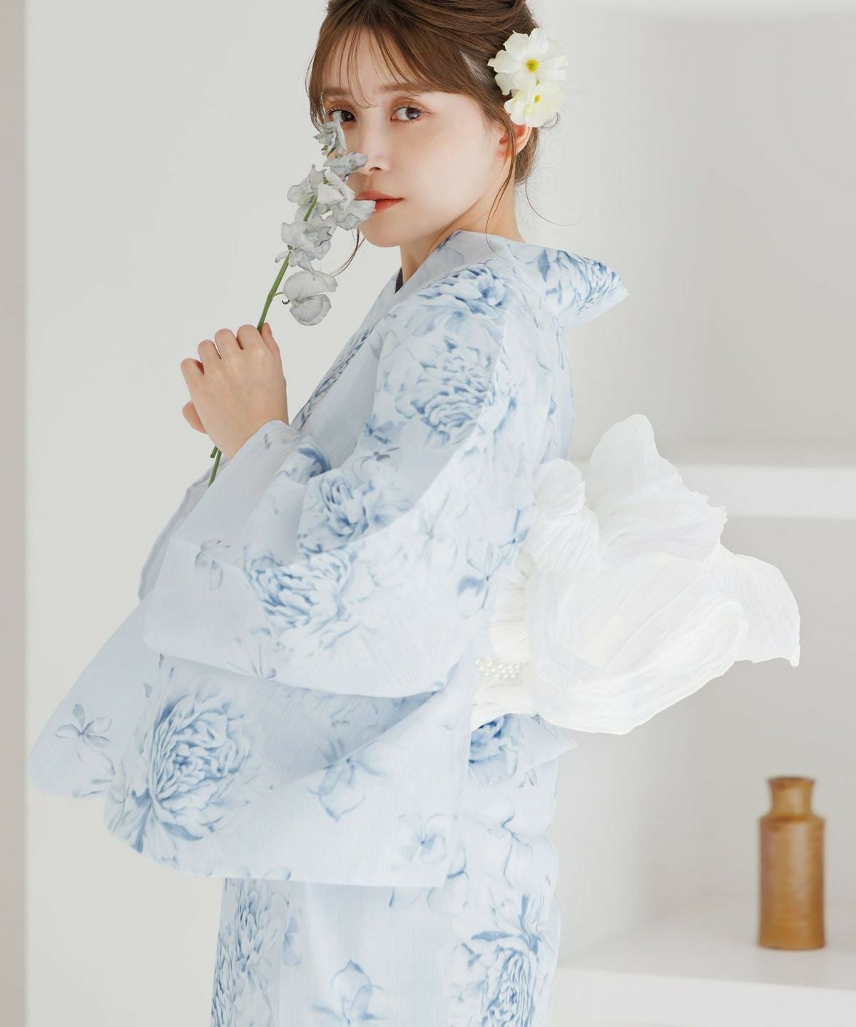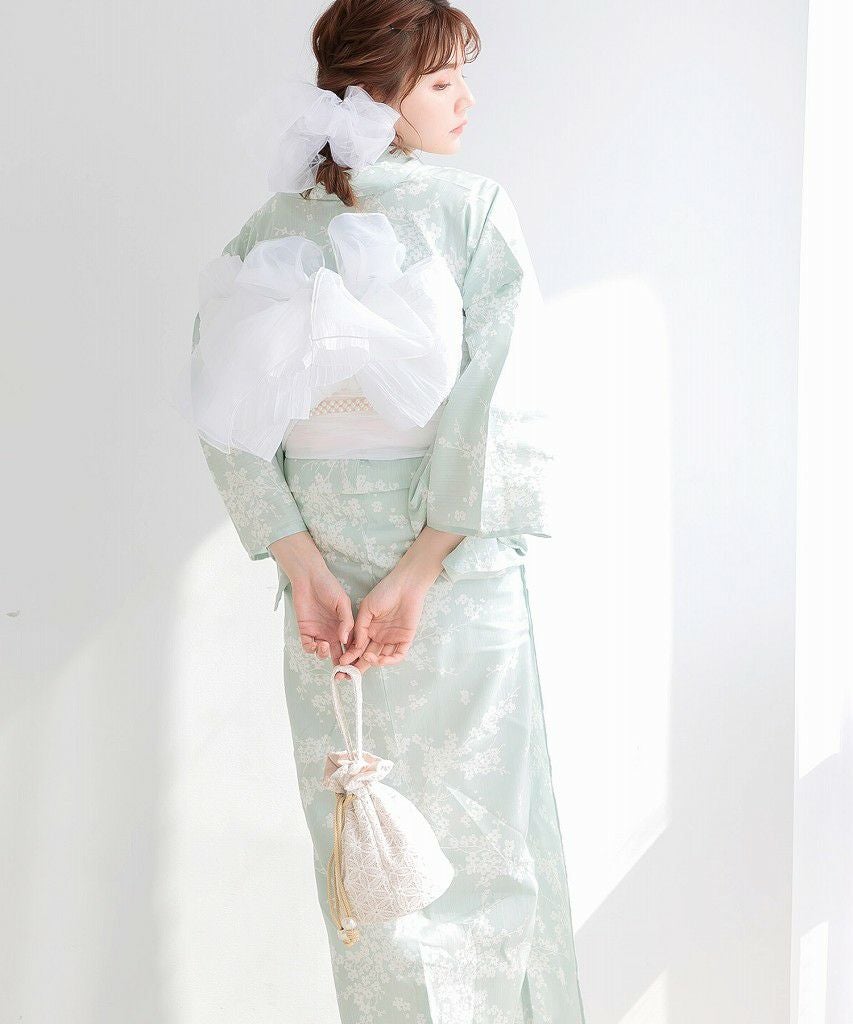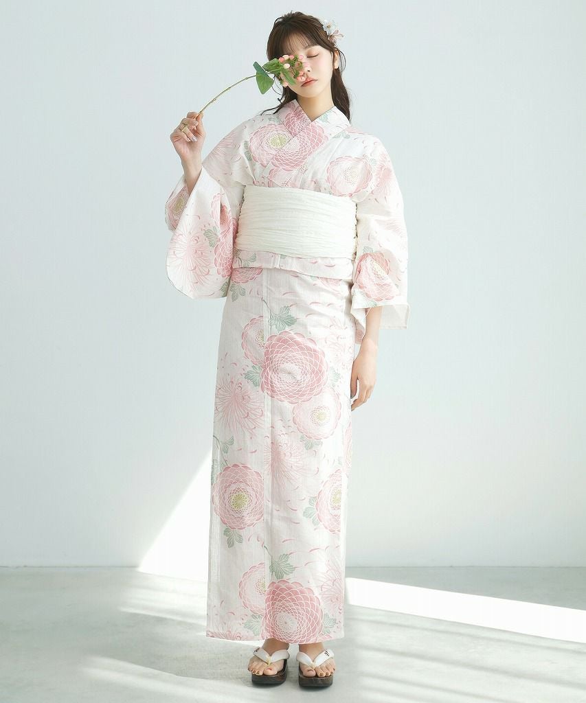 浴衣5点セット(ゆかた・帯・下駄・着付けマニュアル・腰ひも) 清楚な乙女白牡丹