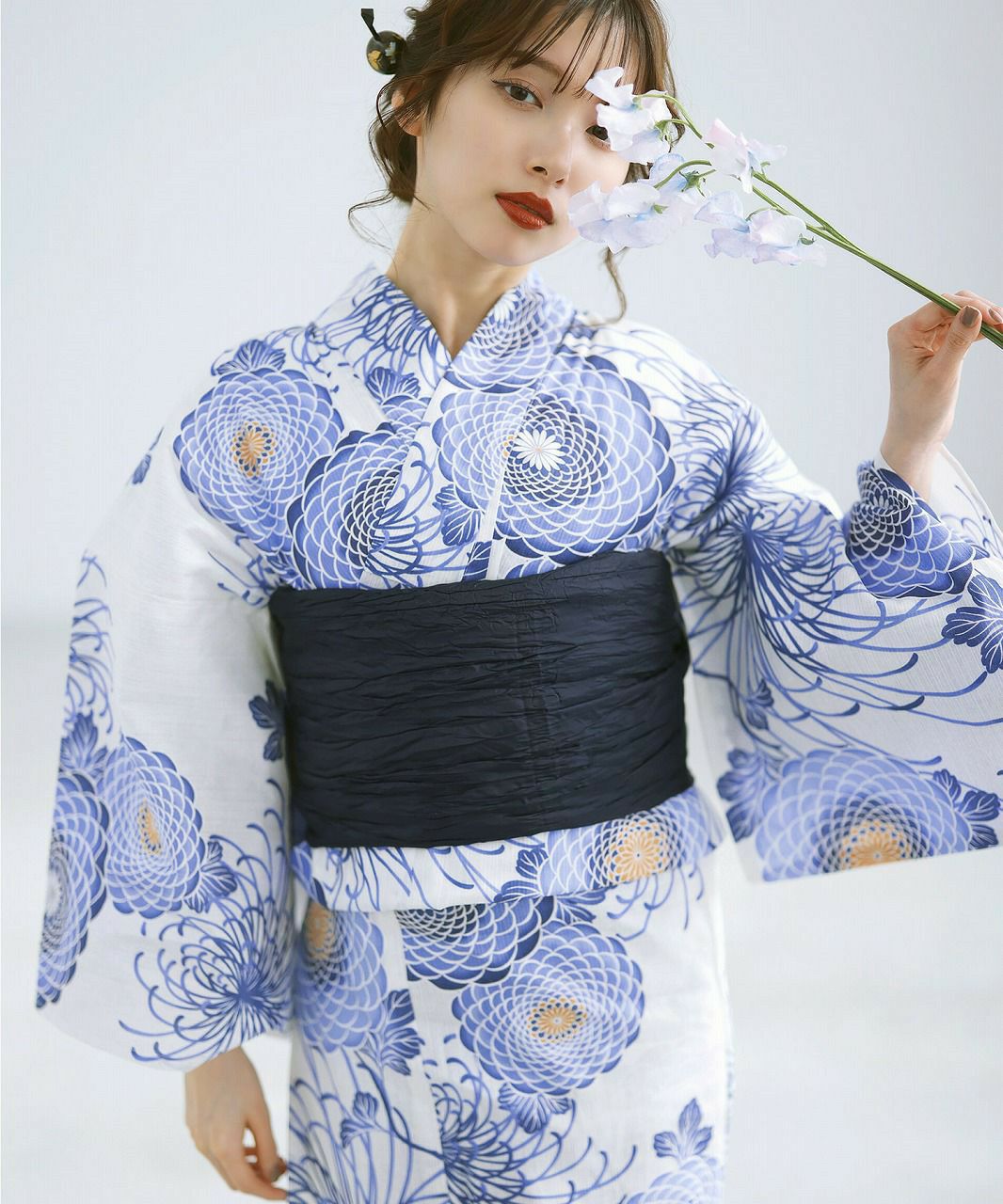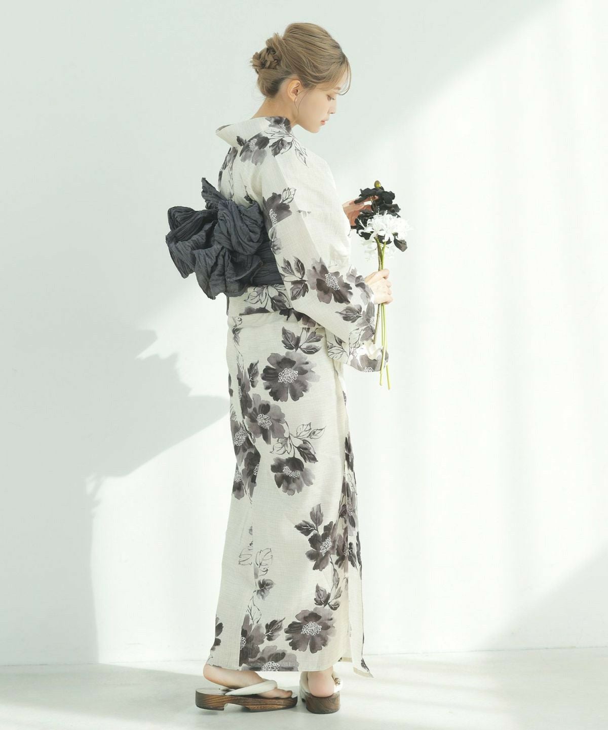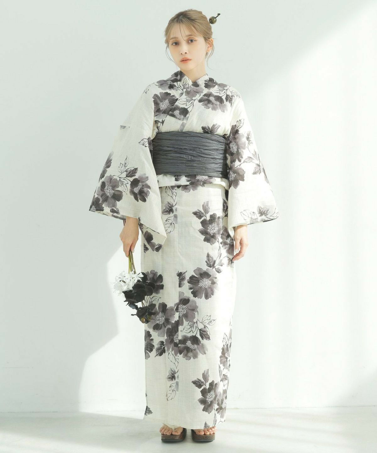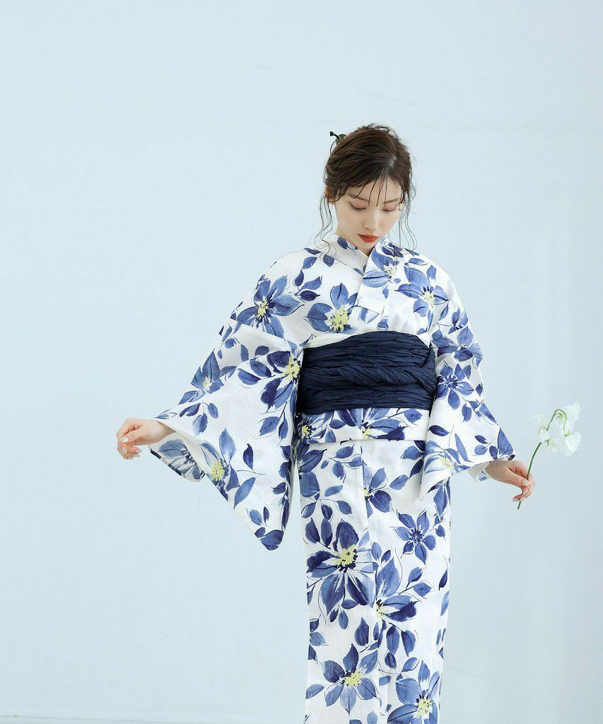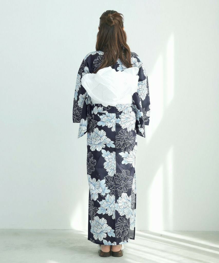 浴衣5点セット(ゆかた・帯・下駄・着付けマニュアル・腰ひも) 燦爛フラワーアート