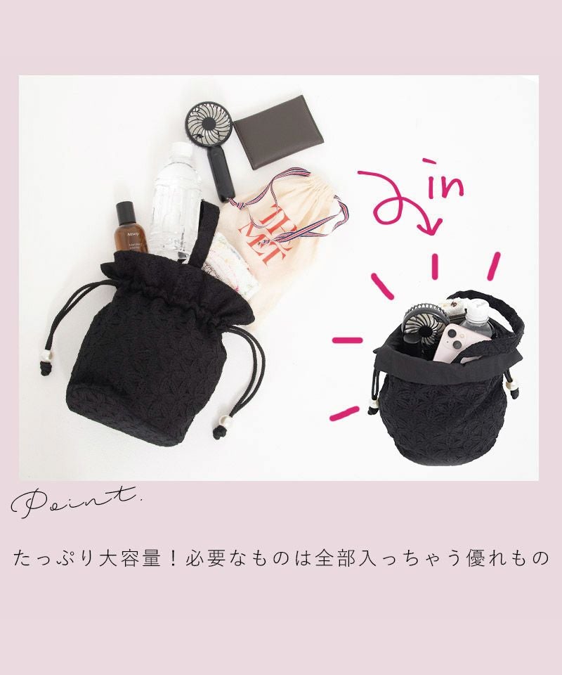 レース巾着 Black