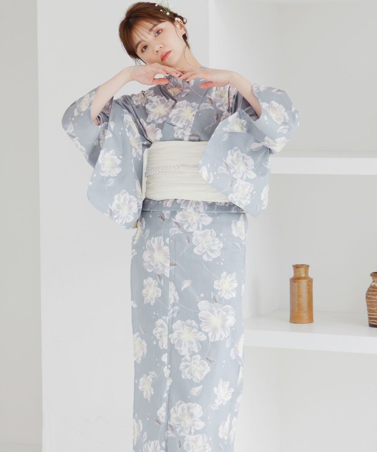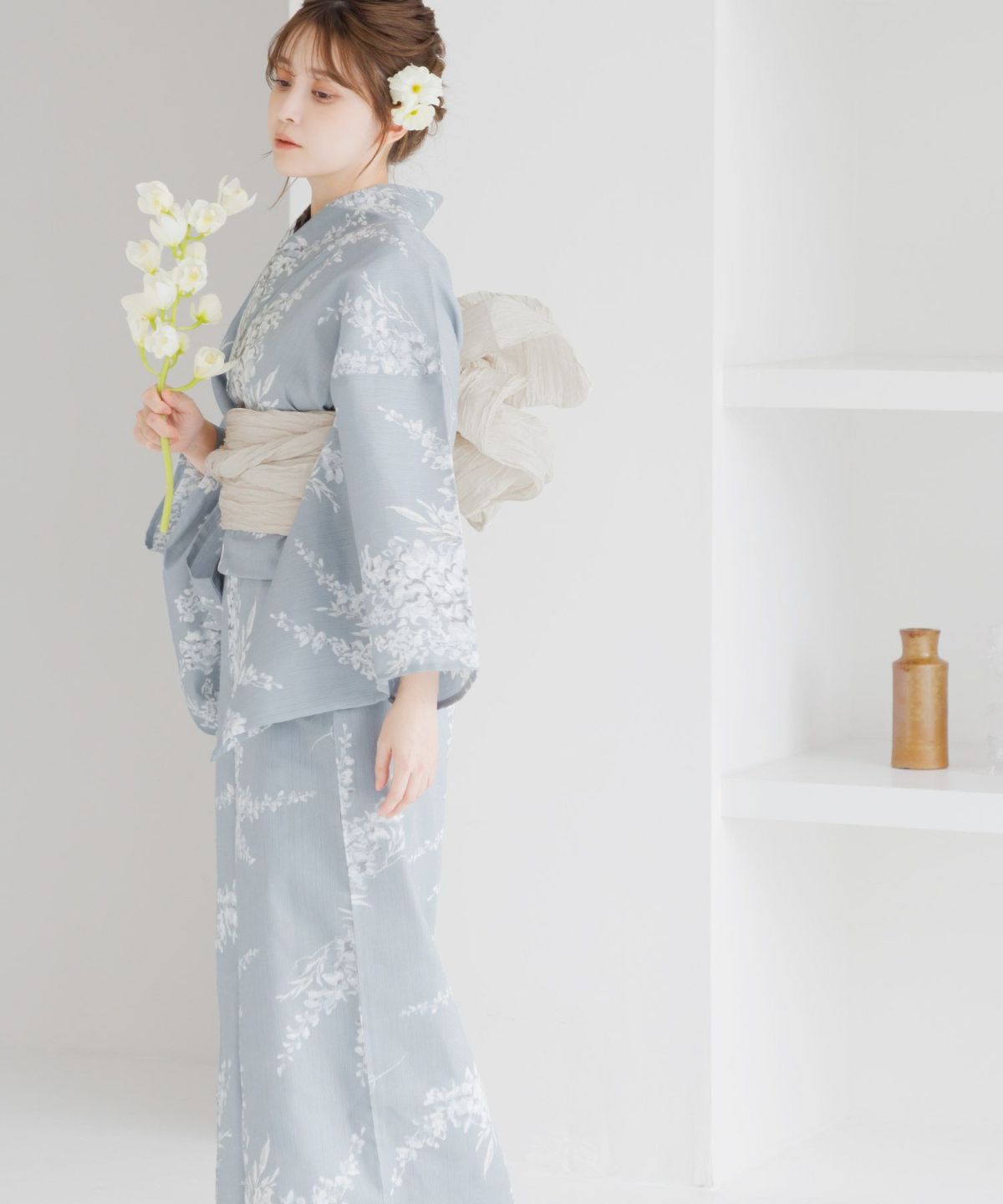 露草色の浮世花 2025 セパレート浴衣3点セット(ゆかた・帯・着付け本)