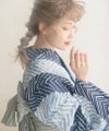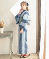 浴衣5点セット(ゆかた・帯・下駄・着付けマニュアル・腰ひも) 江戸波紋