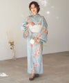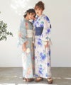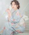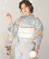 浴衣5点セット(ゆかた・帯・下駄・着付けマニュアル・腰ひも) 湊色の花しらべ