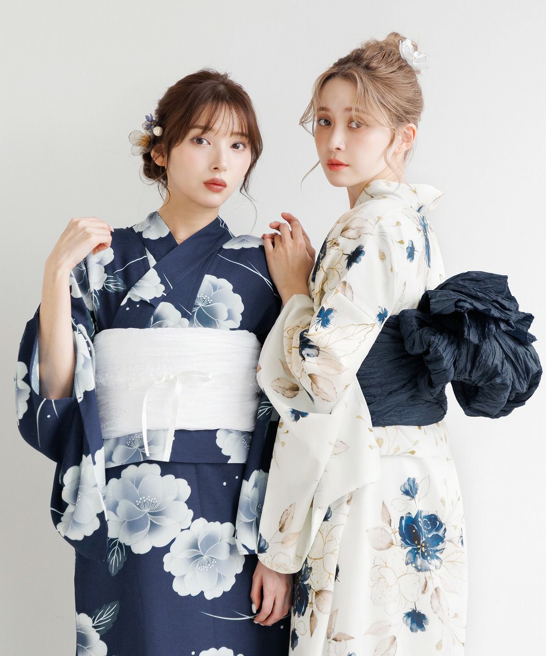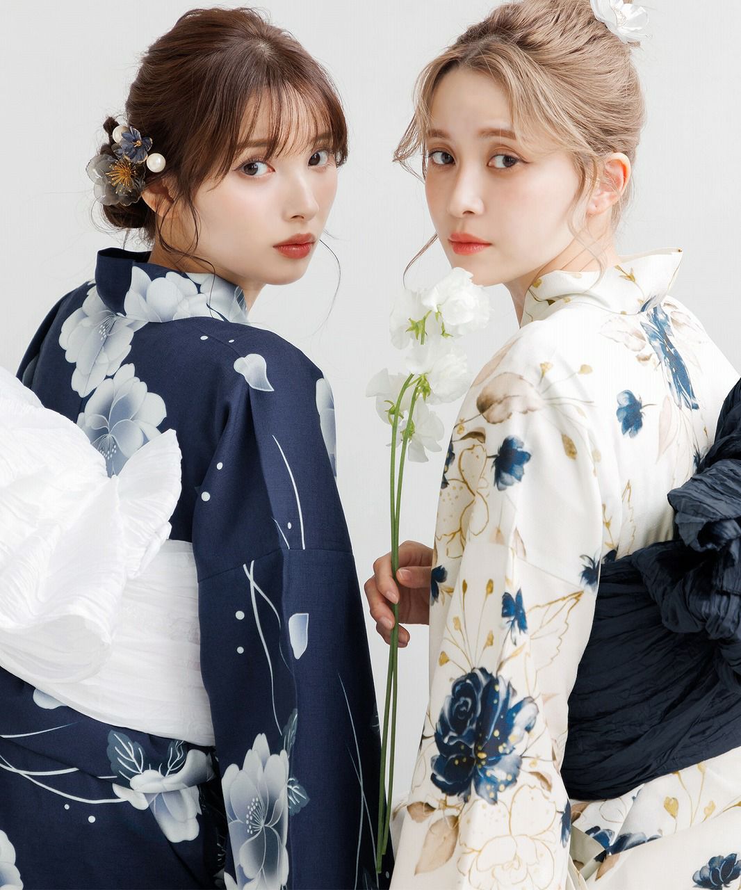 花紺青色の泡沫しらべ 2025 セパレート浴衣3点セット(ゆかた・帯・着付け本)