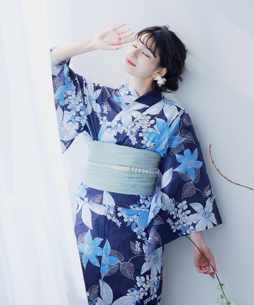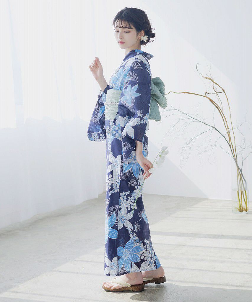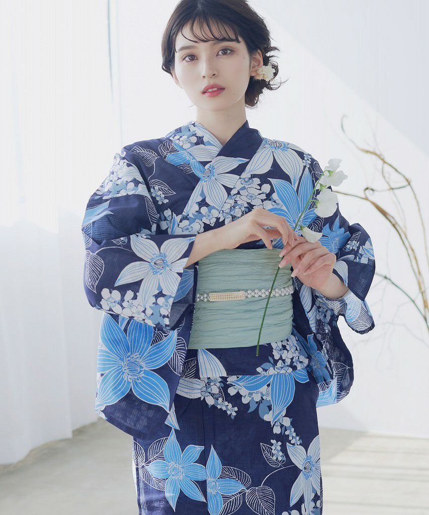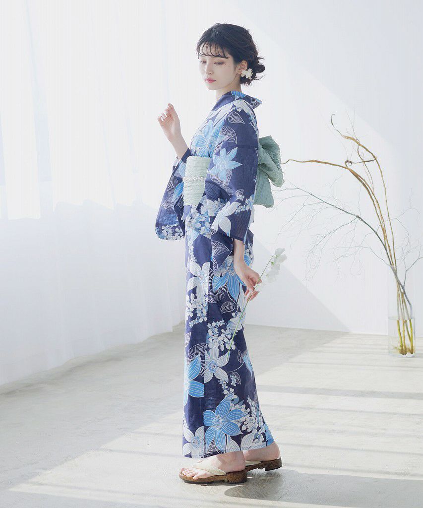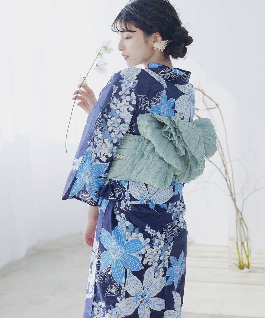 泡沫の花しらべ(宵) 2025 浴衣5点セット(ゆかた・帯・下駄・着付けマニュアル・腰ひも)