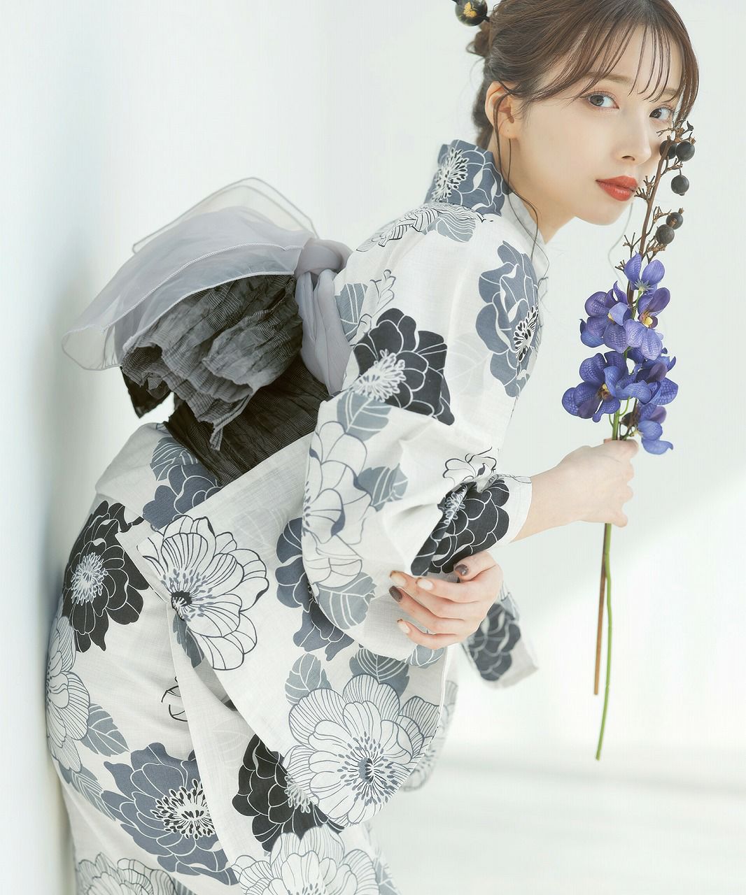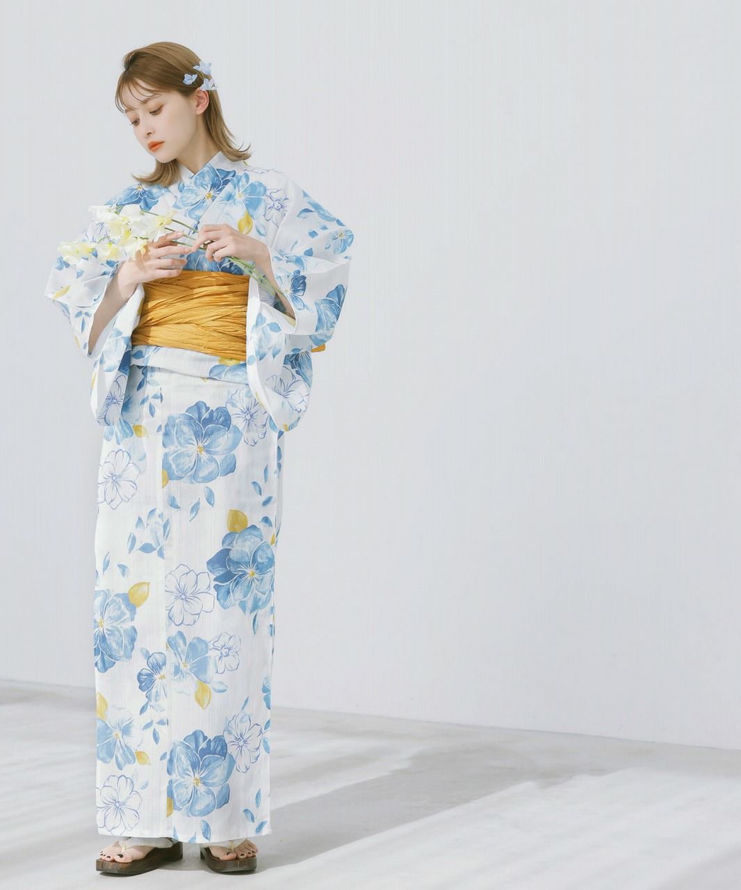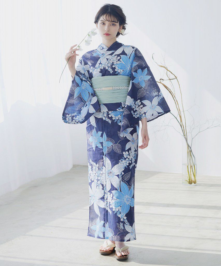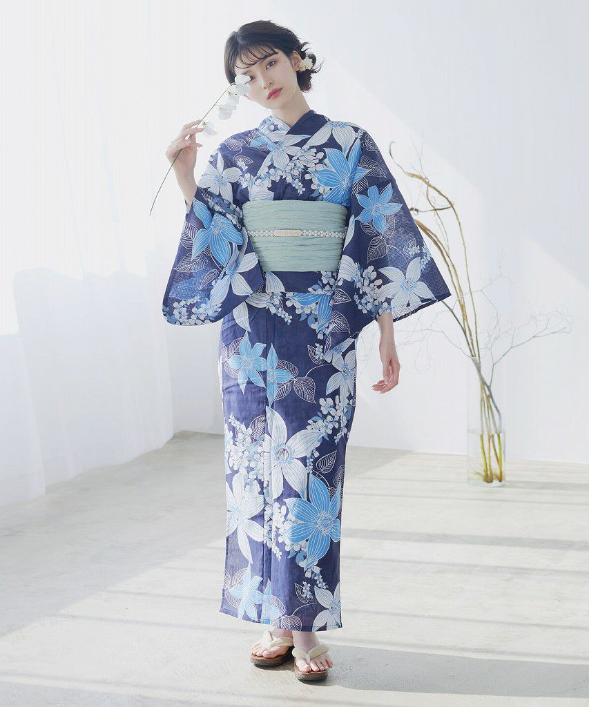 泡沫の花しらべ(宵) 2025 浴衣5点セット(ゆかた・帯・下駄・着付けマニュアル・腰ひも)