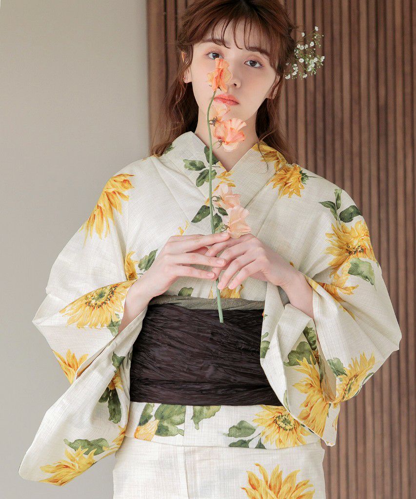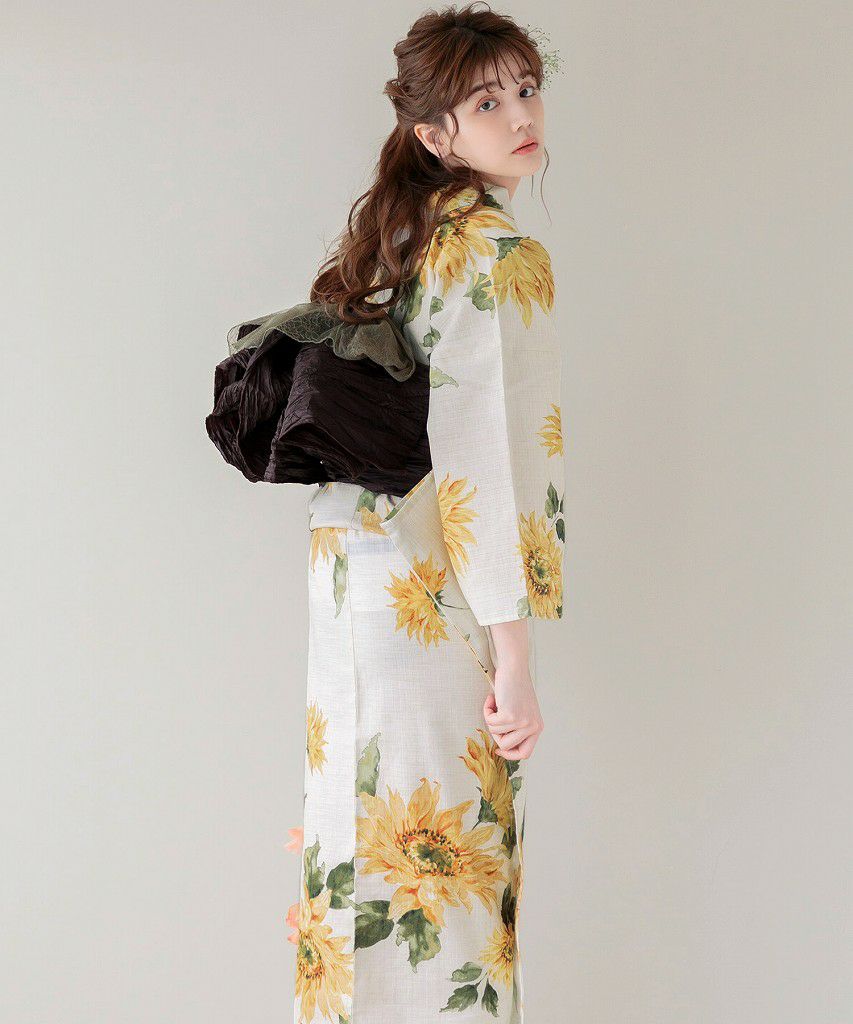 夏色の向日葵あそび 2025 浴衣5点セット(ゆかた・帯・下駄・着付けマニュアル・腰ひも)