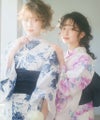 浴衣5点セット(ゆかた・帯・下駄・着付けマニュアル・腰ひも) 水彩絢爛