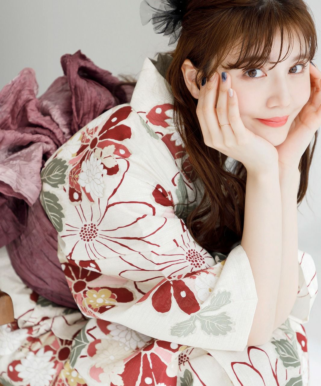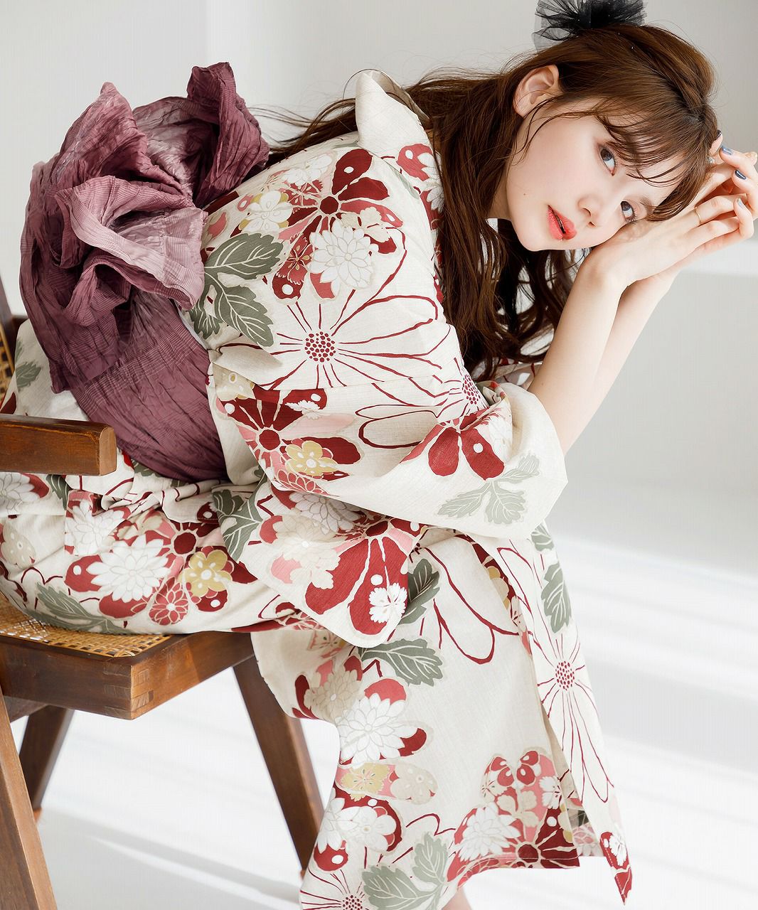 生成り色地に紫陽花 2025 浴衣5点セット(ゆかた・帯・下駄・着付けマニュアル・腰ひも)