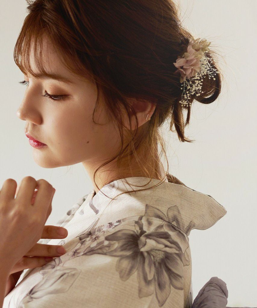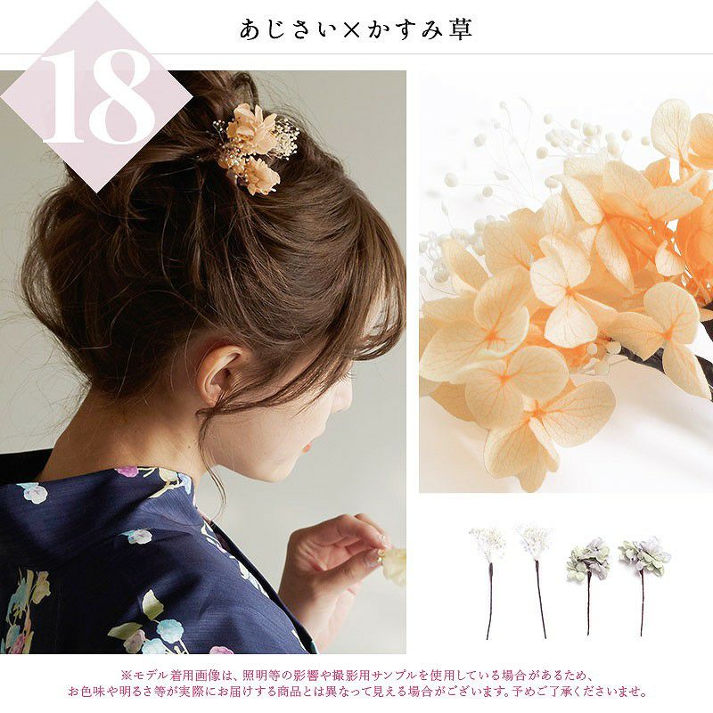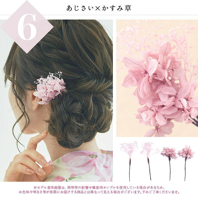 ドライフラワー髪飾り(4本セット) 18.あじさい×かすみ草