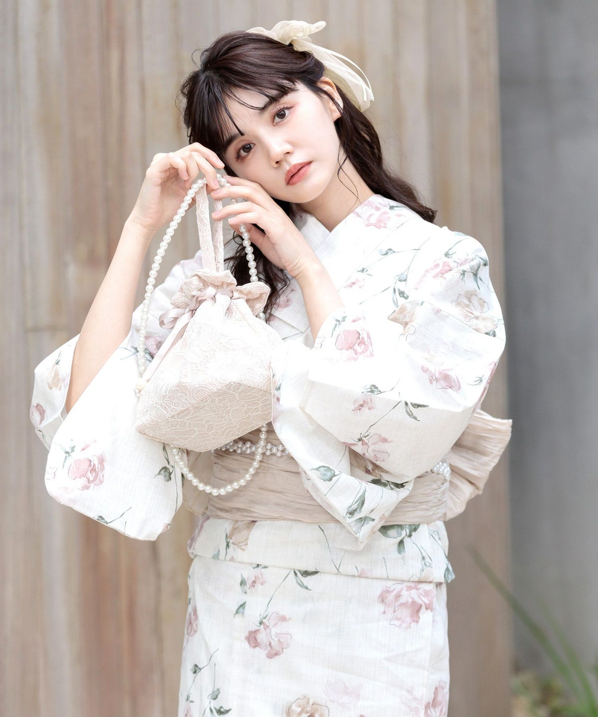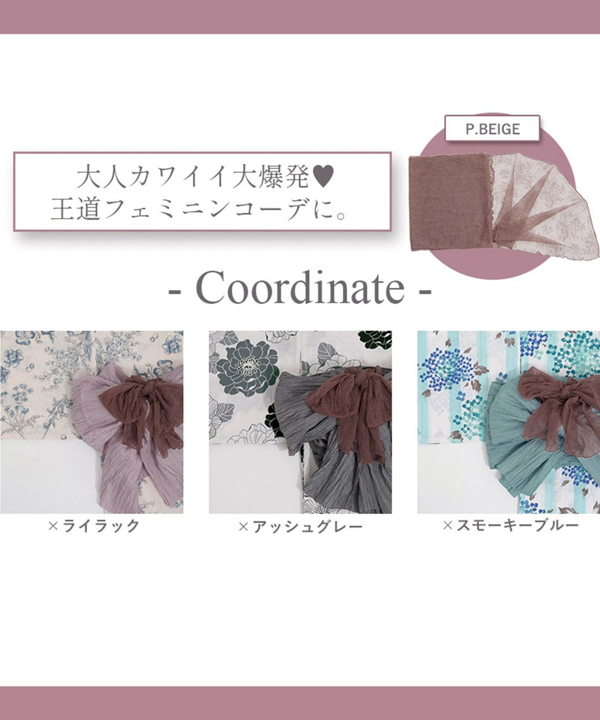 レース兵児帯 P.Beige(ピンクベージュ)