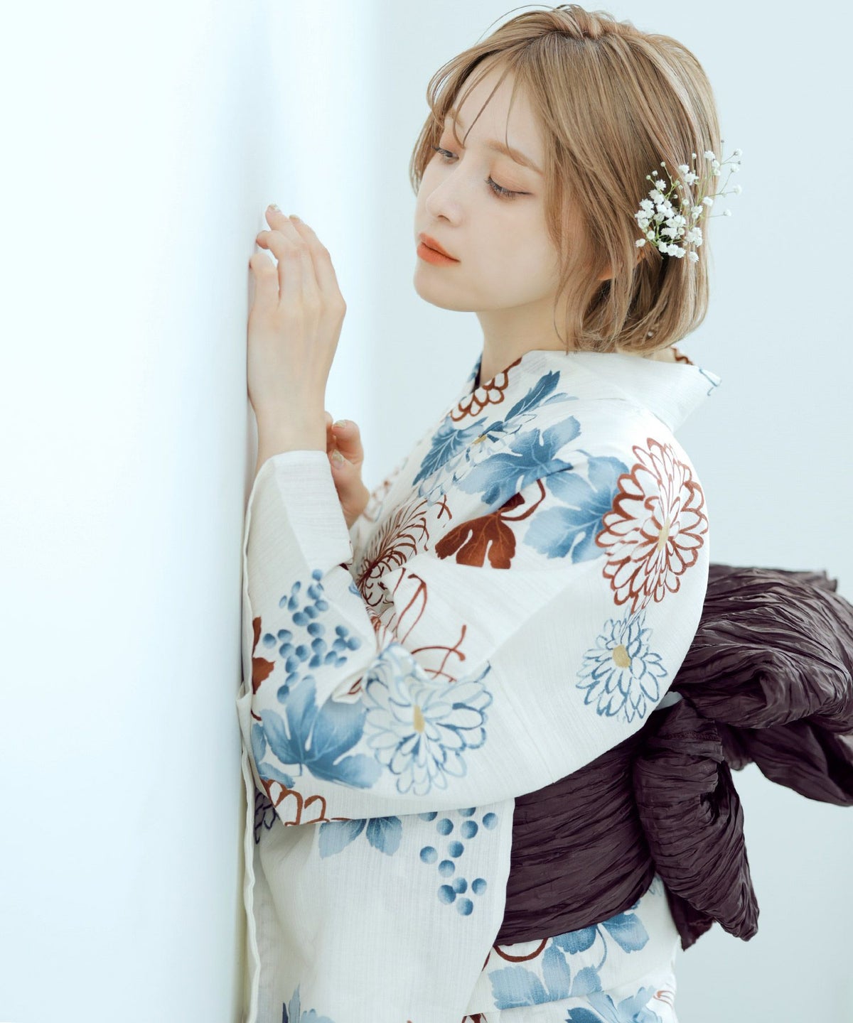 ドライフラワー髪飾り(4本セット) 6.あじさい×かすみ草