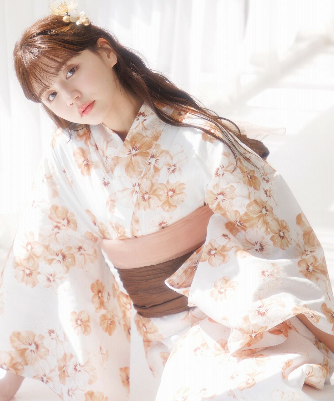 シフォンレース髪飾り ピンクベージュ