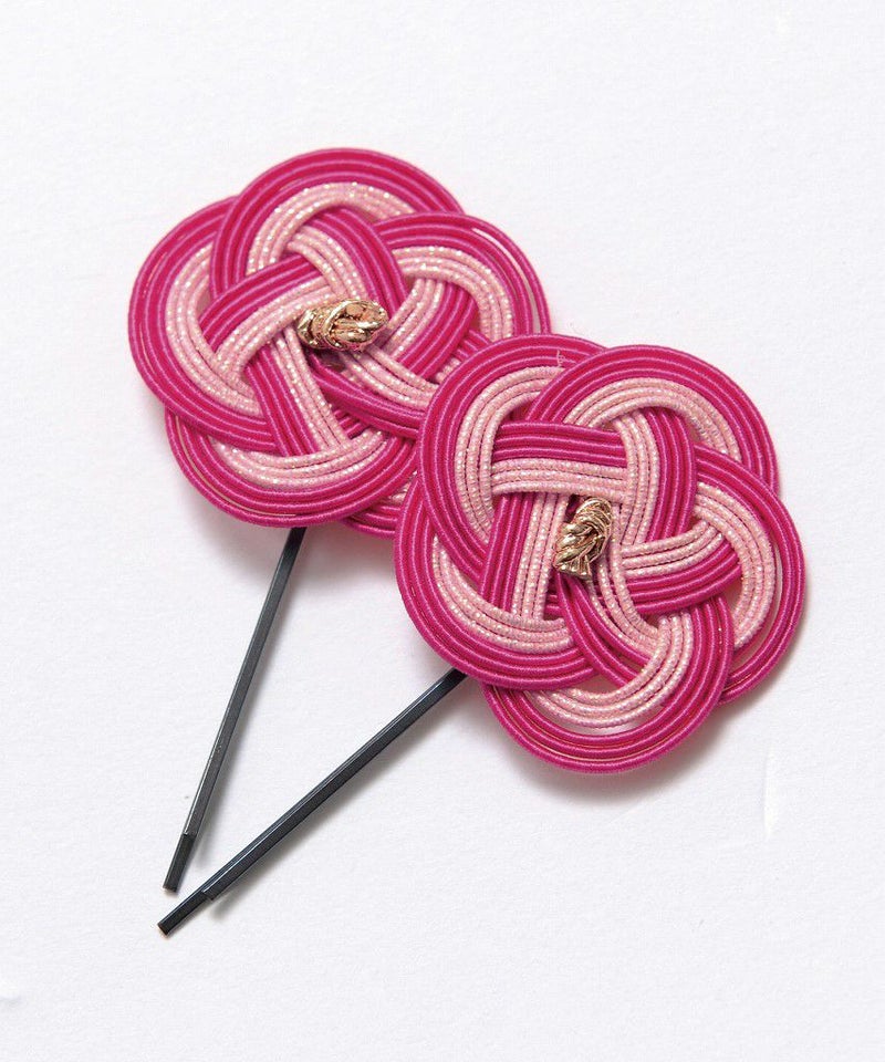 使い方自由自在♪2本セットの梅結び水引きバレッタです。 梅結びは梅の花をモチーフにしており、和な雰囲気が魅力です! 浴衣姿を上品に、ワンランク上に仕上げてくれます。 浴衣や振袖などのお着物、イベント等でお使い頂けるアイテムです◎