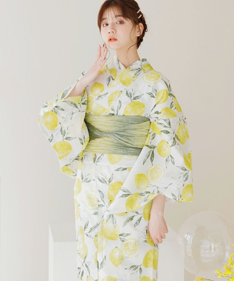 Antique Lemon 2025 浴衣5点セット(ゆかた・帯・下駄・着付けマニュアル・腰ひも)