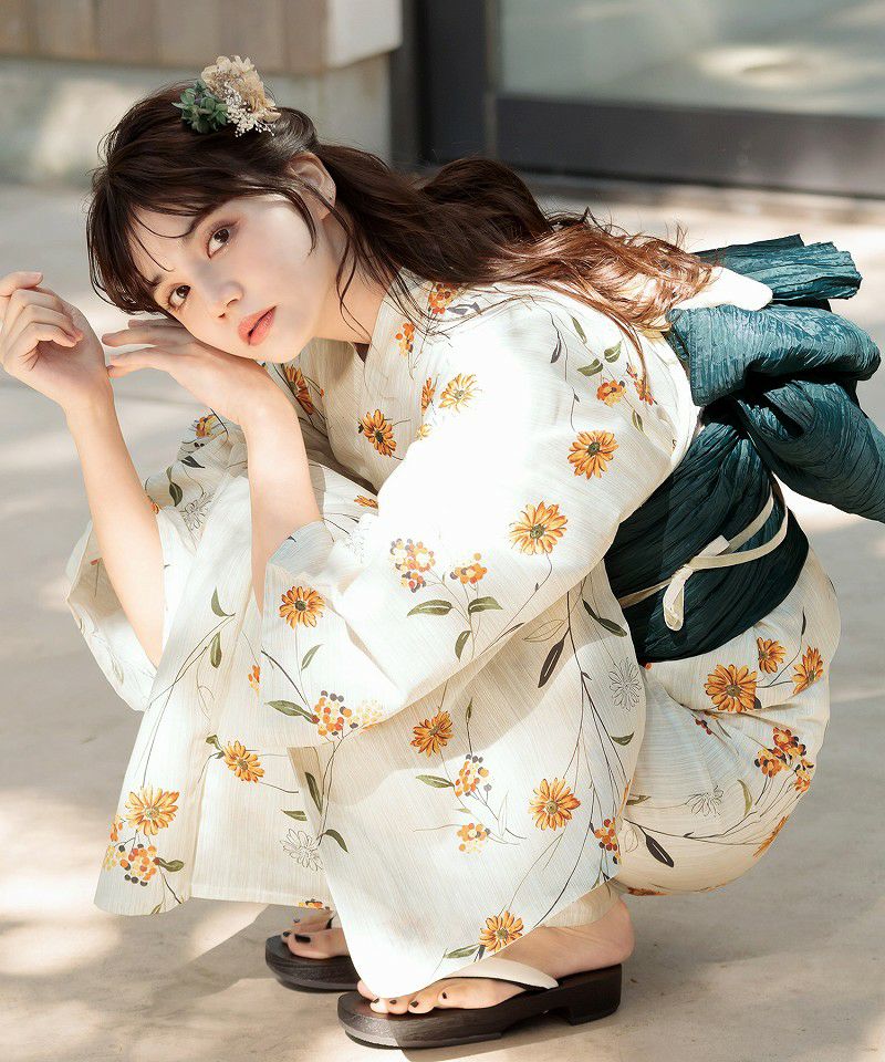 【先行予約/5月中旬より順次発送予定】2026 浴衣5点セット(ゆかた・帯・下駄・着付けマニュアル・腰ひも) 蒲公英色の花あそび