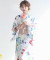 浴衣5点セット(ゆかた・帯・下駄・着付けマニュアル・腰ひも) 燦爛フラワーアート