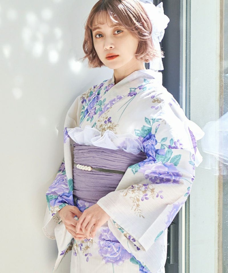 浴衣5点セット(ゆかた・帯・下駄・着付けマニュアル・腰ひも) 浮世の薔薇絢爛