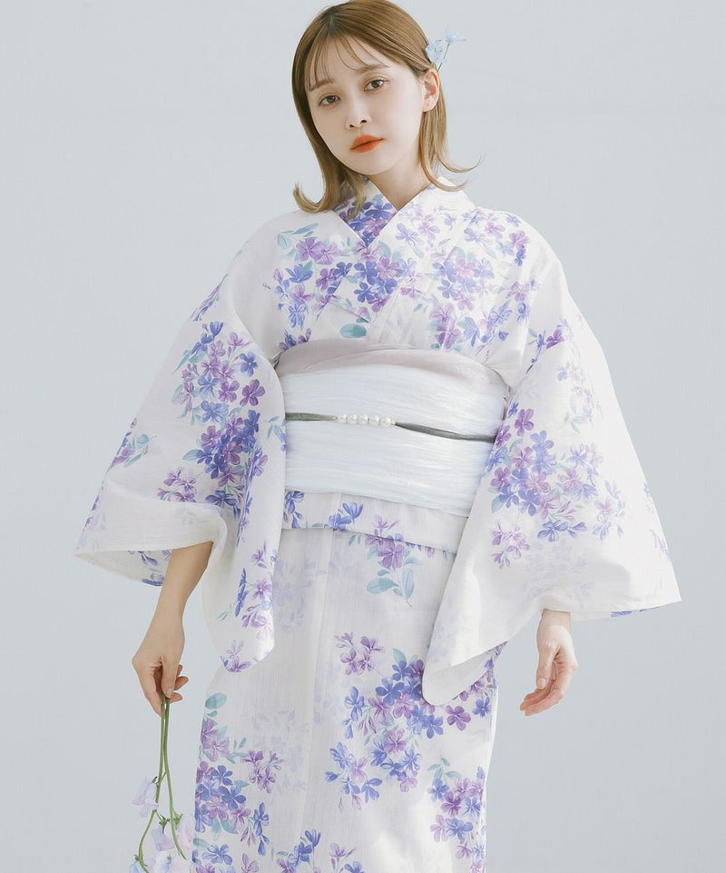 浴衣5点セット(ゆかた・帯・下駄・着付けマニュアル・腰ひも) 夏めく風鈴草