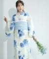 浴衣5点セット(ゆかた・帯・下駄・着付けマニュアル・腰ひも) はんなり月下美人(涼)