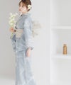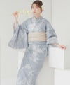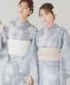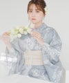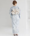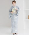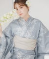 浴衣5点セット(ゆかた・帯・下駄・着付けマニュアル・腰ひも) 山紫水明(浅葱)