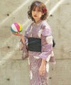 浴衣5点セット(ゆかた・帯・下駄・着付けマニュアル・腰ひも) 古典雪輪