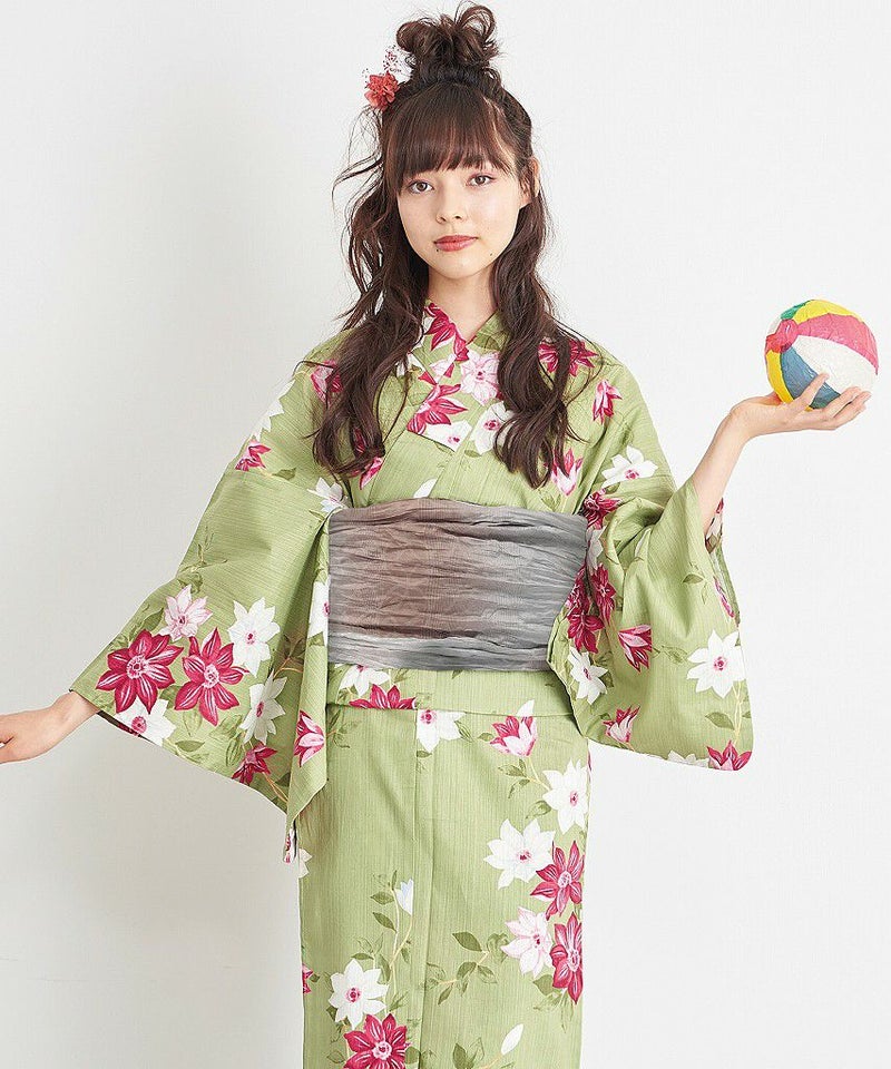 浴衣5点セット(ゆかた・帯・下駄・着付けマニュアル・腰ひも) 宇治のはなしらべ