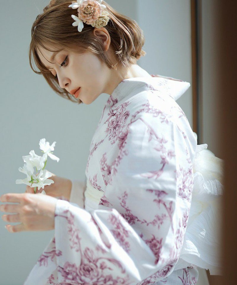 浴衣5点セット(ゆかた・帯・下駄・着付けマニュアル・腰ひも) Toile de Jouy(トワル・ド・ジュイ)