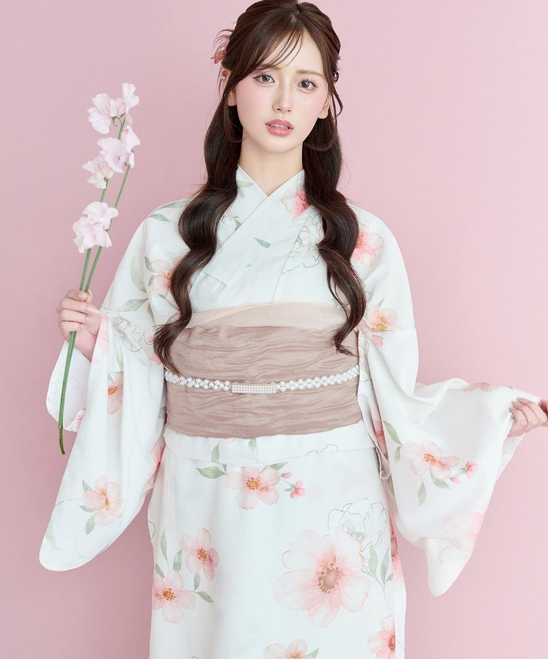 2026 ワンピース浴衣3点セット(羽織・ワンピース・帯) 【先行予約/6月上旬より順次発送予定】春風の白桃花