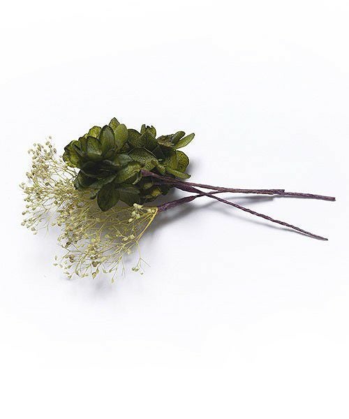 あじさいやカスミソウ、ラグラスなどを組み合わせた、使い方自由自在の4本セット。 組み合わせ次第でさまざまなシーンに活躍します。 浴衣や振袖などの和装はもちろん、ウェディングドレスなどの洋装にもおすすめ。 ワイヤー部分は曲げられるため、髪にくくるなどアレンジも可能です。
