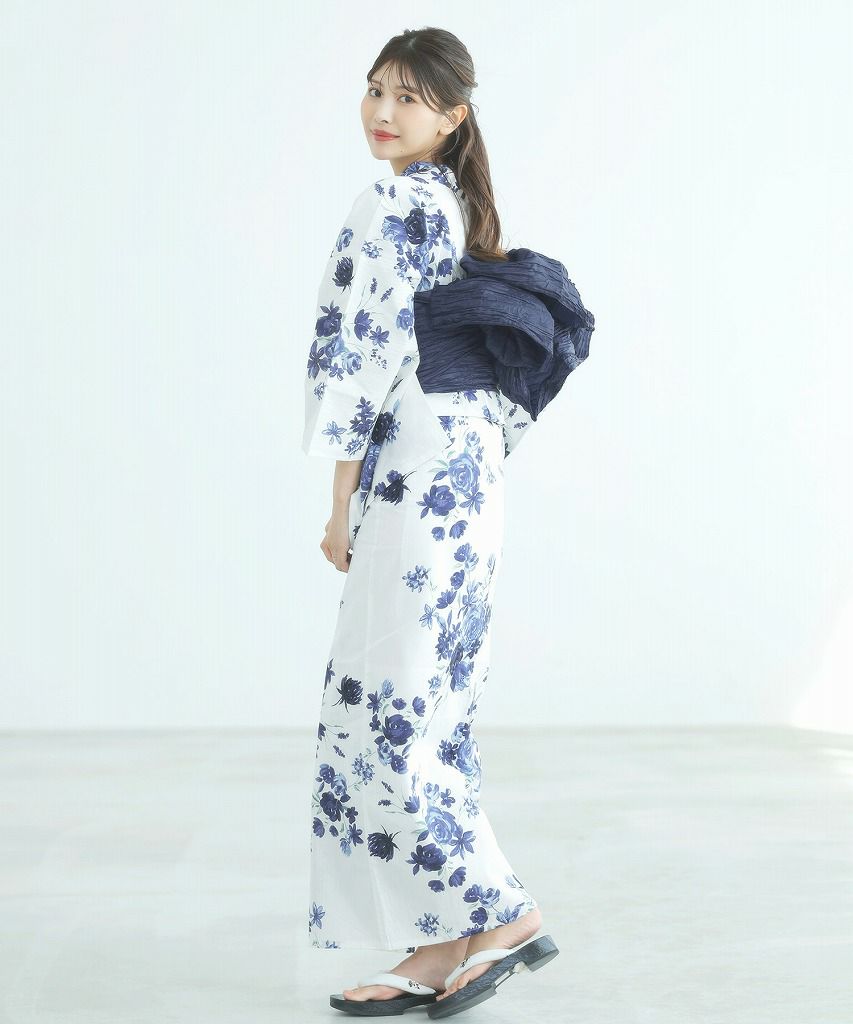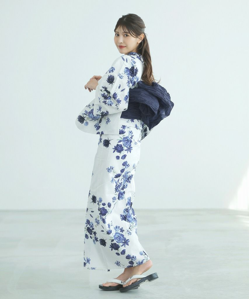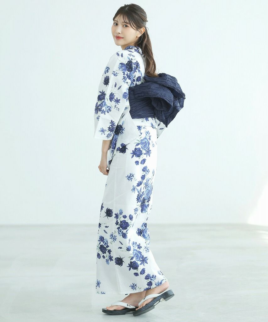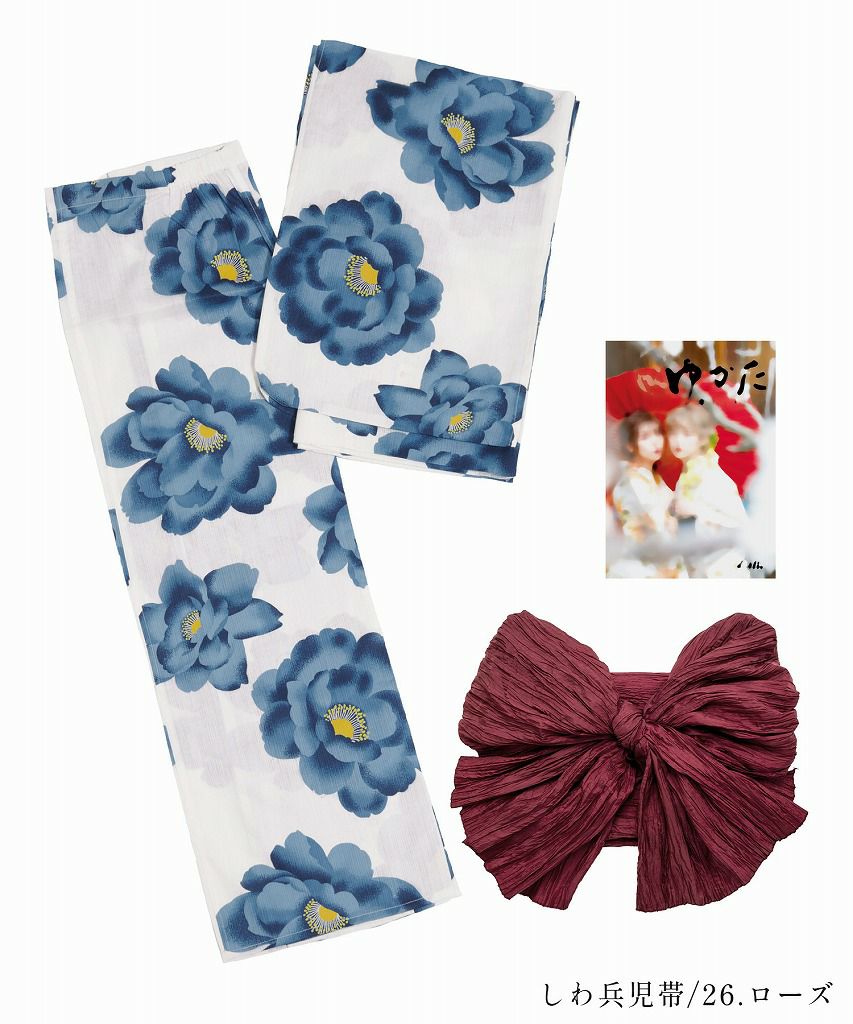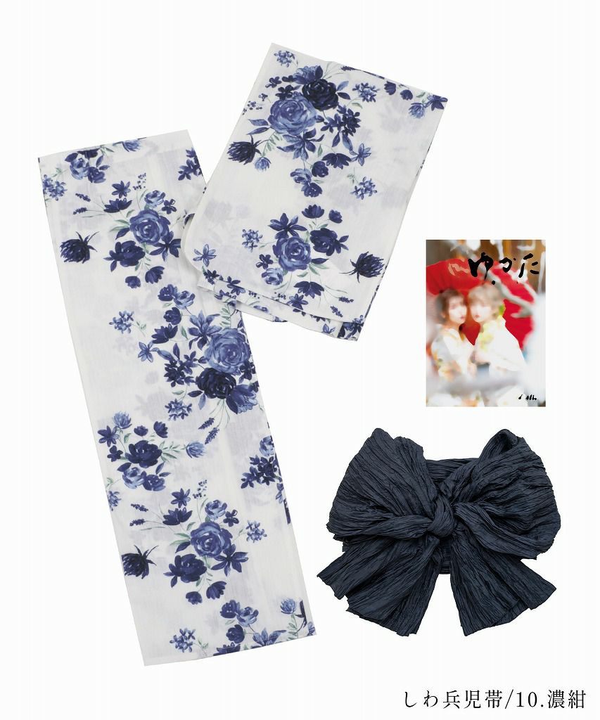 洋花の薔薇重ね 2025 セパレート浴衣3点セット(ゆかた・帯・着付け本)